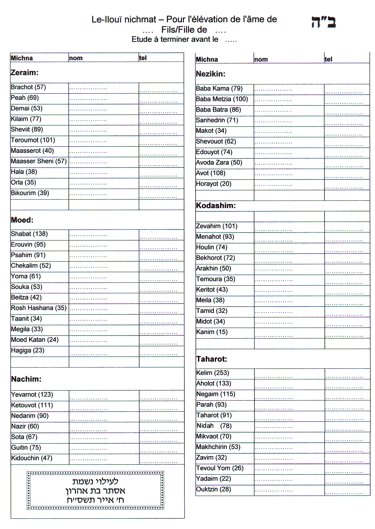et leurs amis l'étude des traités de la Michnah, à terminer